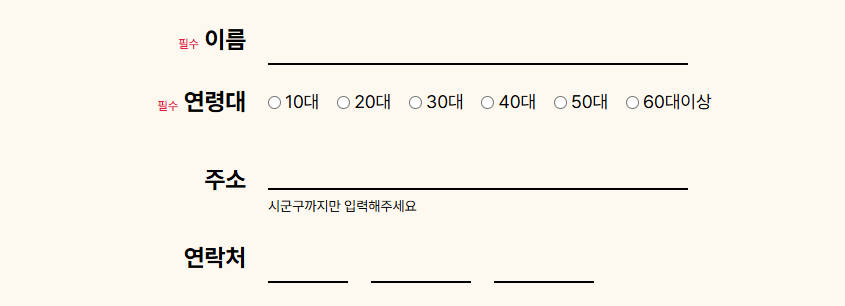 1. 이름, 연령대, 주소, 연락처 입력