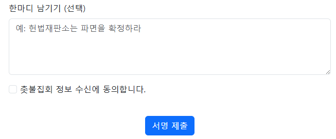 대통령 윤석열의 파면을 요구하는 서명 운동에 대해 많이 들어보셨을 것입니다. 많은 시민들이 이 운동에 참여하며 각자의 목소리를 내고 있습니다. 윤석열 파면 서명 운동은 대한민국의 대통령 윤석열을 파면하라는 요구를 담고 있는 시민 중심의 운동이며, 이 운동은 국민들이 직접 서명하여 윤석열 대통령의 파면을 촉구하는 형태로 진행되고 있습니다. 최근 서명 운동은 빠르게 확산되고 있으며, 많은 사람들의 관심을 받고 있습니다. 이 서명 운동은 여러 가지 이유에서 시작되었습니다. 윤석열 대통령의 여러 정책과 발언이 국민의 정서와 맞지 않다고 느끼는 사람들이 많아졌고, 123 내란 계엄으로 인하여 시민들이 직접 목소리를 내기로 결심한 것입니다. 서명 운동에 참여하는 방법은 매우 간단합니다. 우선, 인터넷을 통해 관련 웹사이트에 접속하여 서명 양식을 작성하면 됩니다. 그 후, 자신의 의견을 남기거나 추가적인 정보를 입력할 수 있습니다. 이러한 방식은 누구나 쉽게 참여할 수 있도록 하고 있으며, 많은 사람들이 자신의 목소리를 내는 중요한 수단으로 자리잡고 있습니다. 관심있거나 참여하고 싶으신분은 아래 링크를 통해 참여 하실 수 있으니 참조바랍니다.
